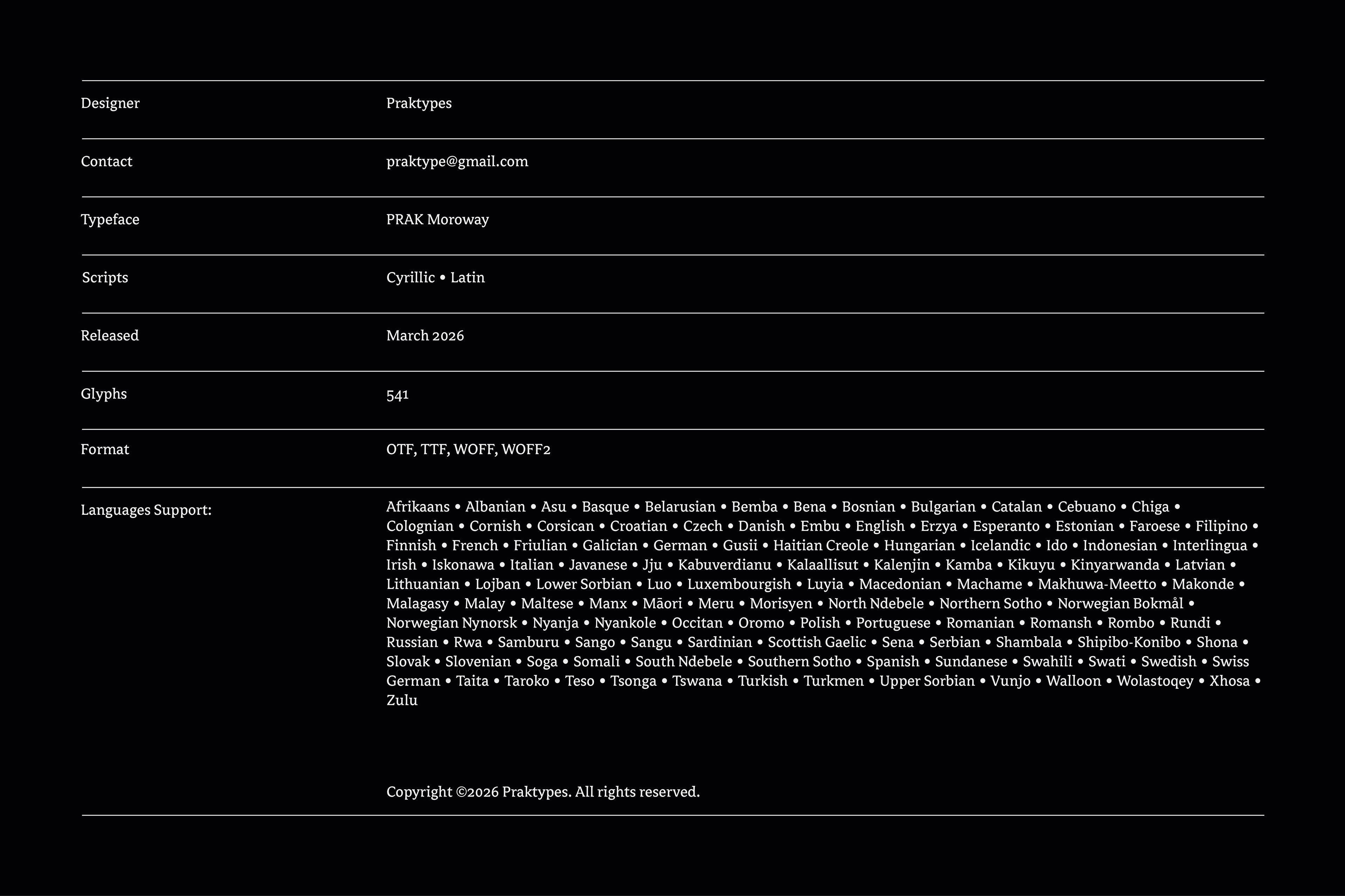 PRAK Moroway - Latin & Cyrillic